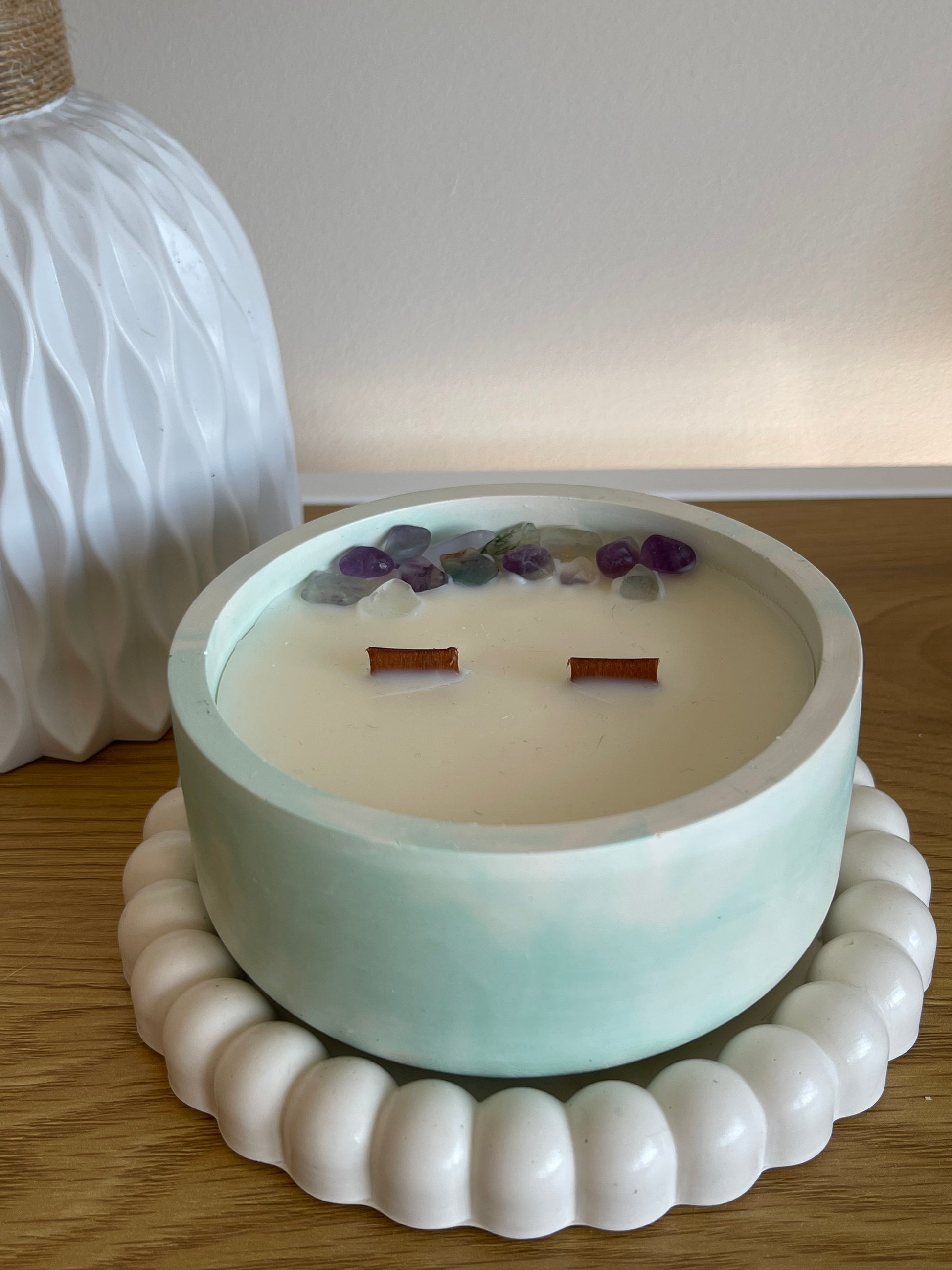 Vela hecha a mano con cera 100% de soja, fragancia vegana y libre de ftalatos. Cada envase es vertido y barnizado a mano, convirtiendo cada pieza en un objeto único. Disponibles en tres tamaños para adaptarse a cualquier rincón de tu hogar.