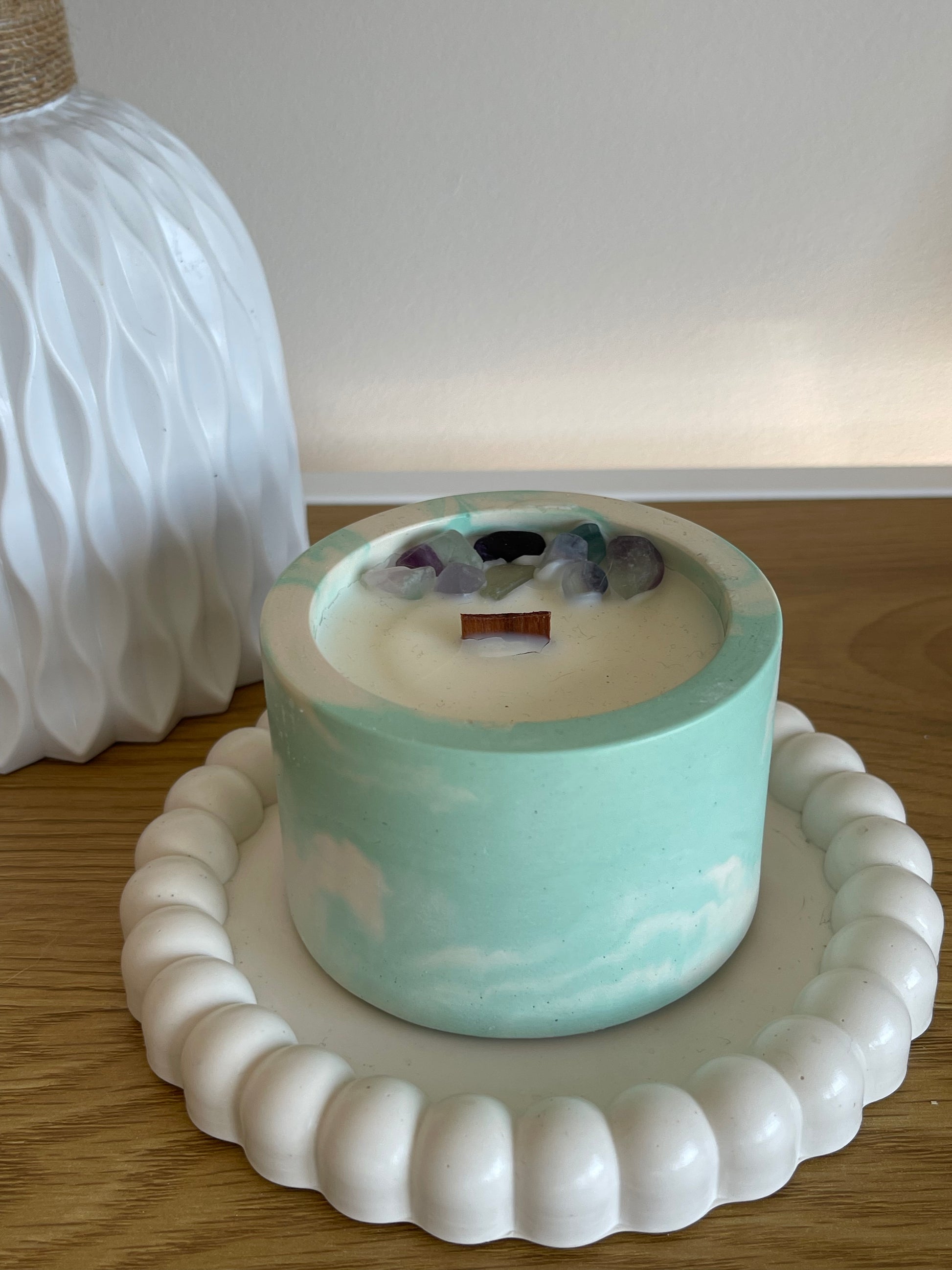 Vela hecha a mano con cera 100% de soja, fragancia vegana y libre de ftalatos. Cada envase es vertido y barnizado a mano, convirtiendo cada pieza en un objeto único. Disponibles en tres tamaños para adaptarse a cualquier rincón de tu hogar.
