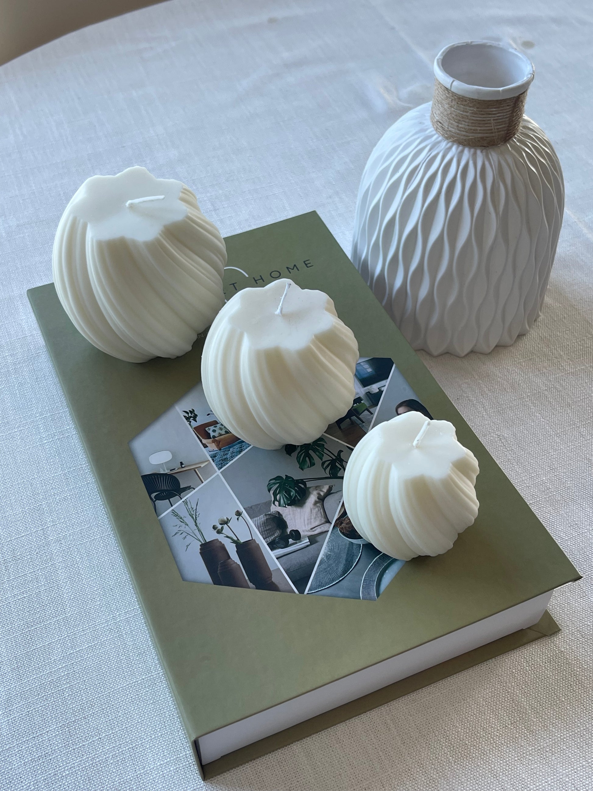 Vela decorativa con diseño en espiral, ideal para dar un toque moderno y elegante a tu espacio.