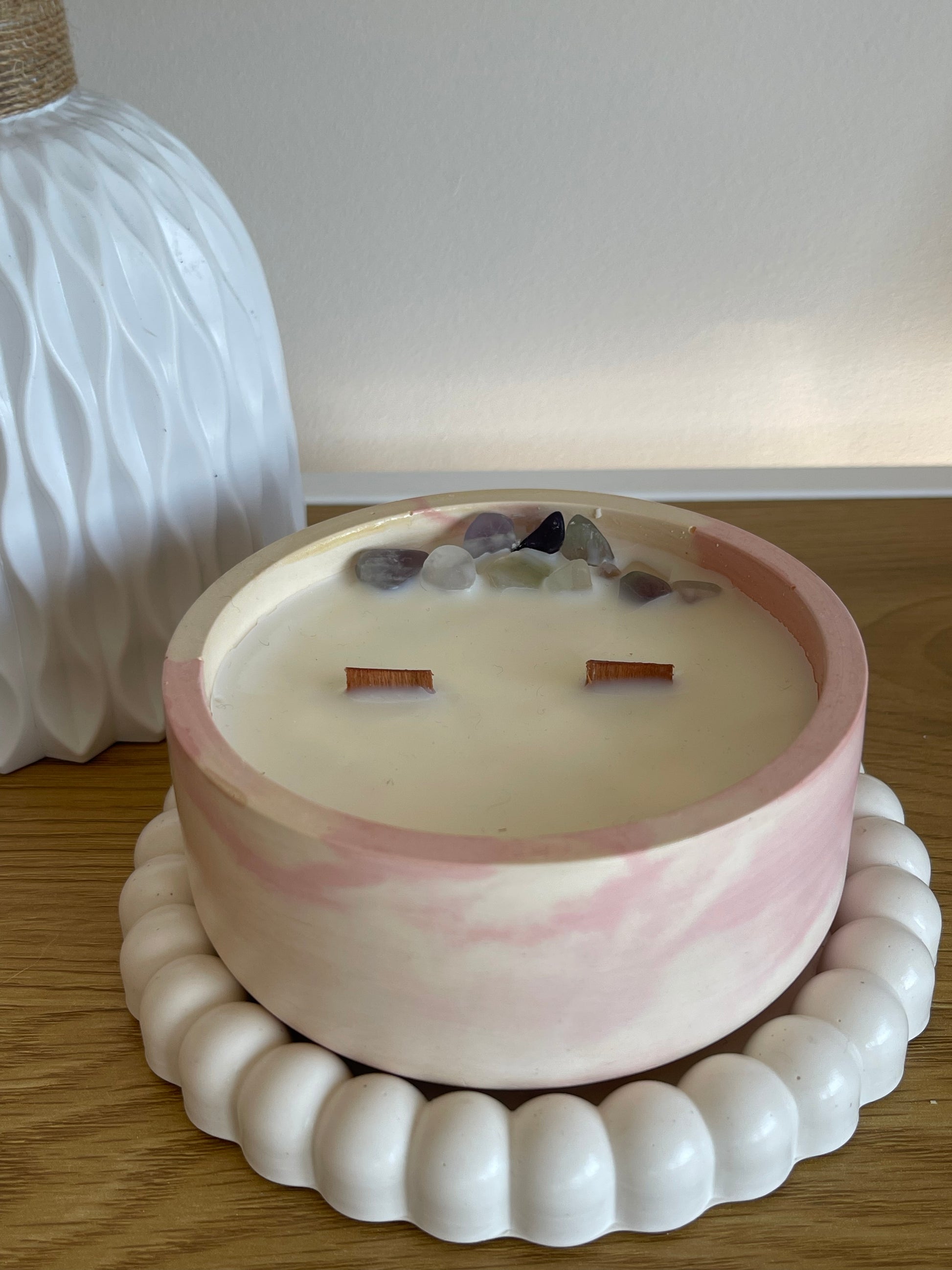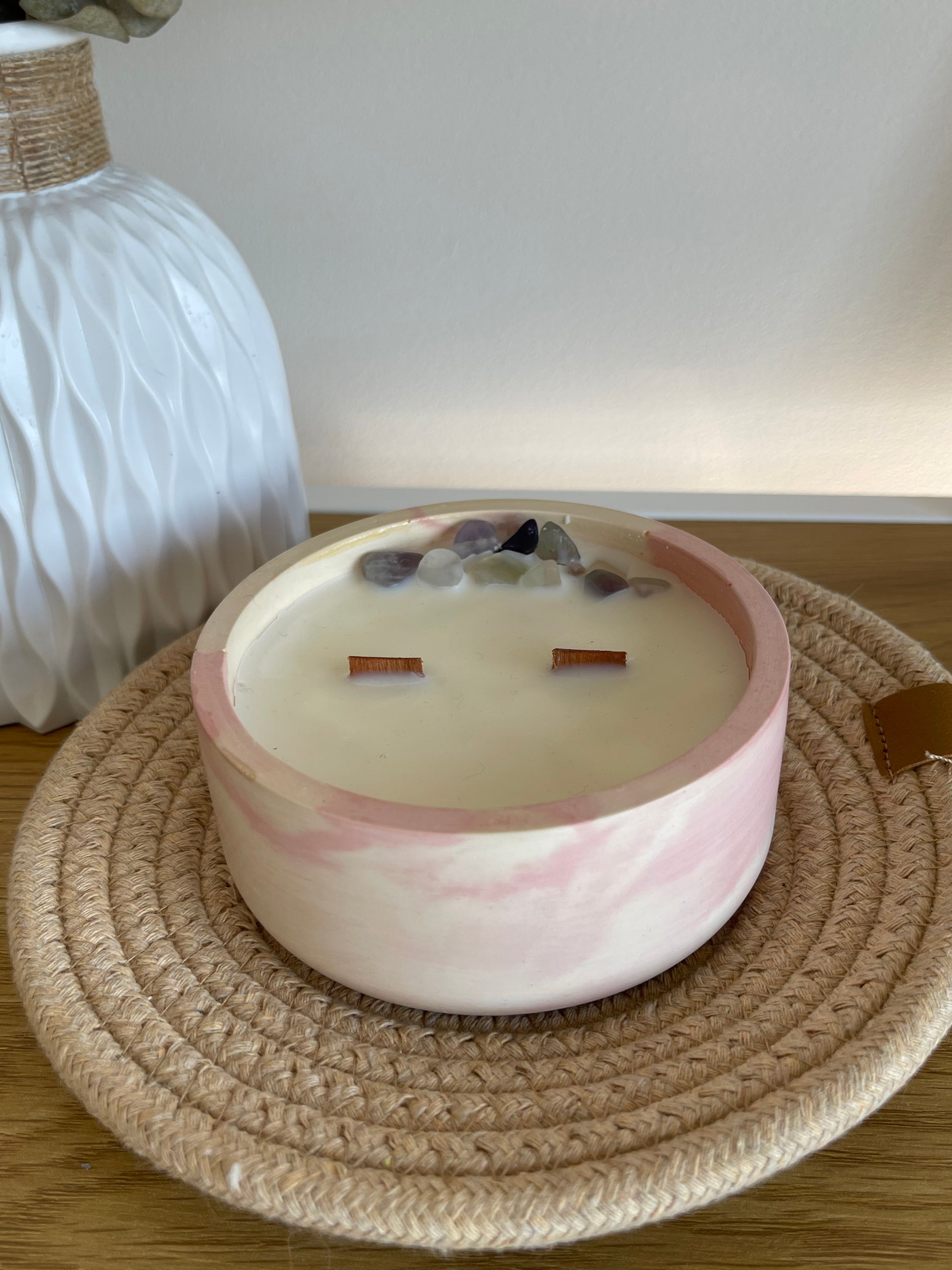 Vela hecha a mano con cera 100% de soja, fragancia vegana y libre de ftalatos. Cada envase es vertido y barnizado a mano, convirtiendo cada pieza en un objeto único. Disponibles en tres tamaños para adaptarse a cualquier rincón de tu hogar.